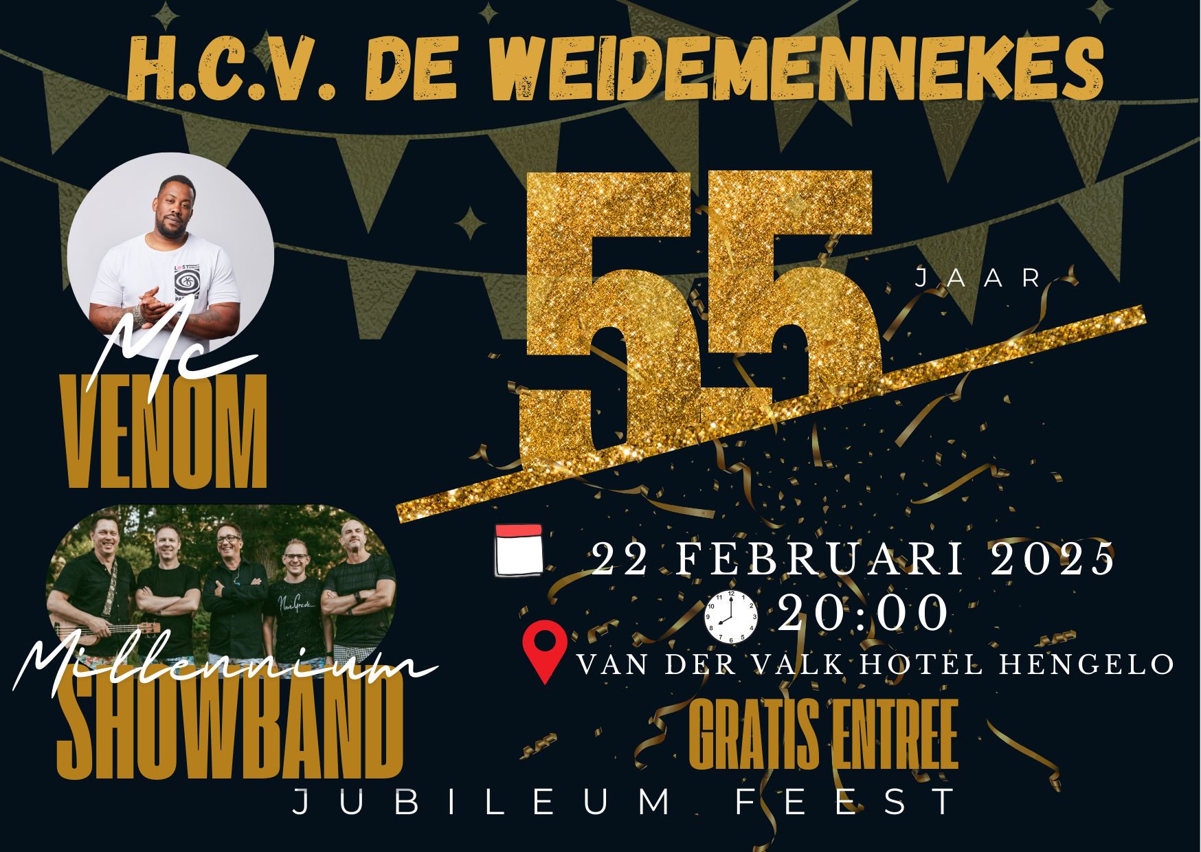 Zoals jullie wellicht al weten viert H.C.V. de Weidemennekes dit jaar het 55 jarig bestaan. Om deze mijlpaal te vieren organiseren zij een jubileumfeest! Dit feest zal plaatsvinden op 22 februari 2025 vanaf 20.00 uur bij Van der Valk te Hengelo. Ga jij ook mee naar het jubileumfeest van H.C.V. De Deurtrappers? Geef je dan...
